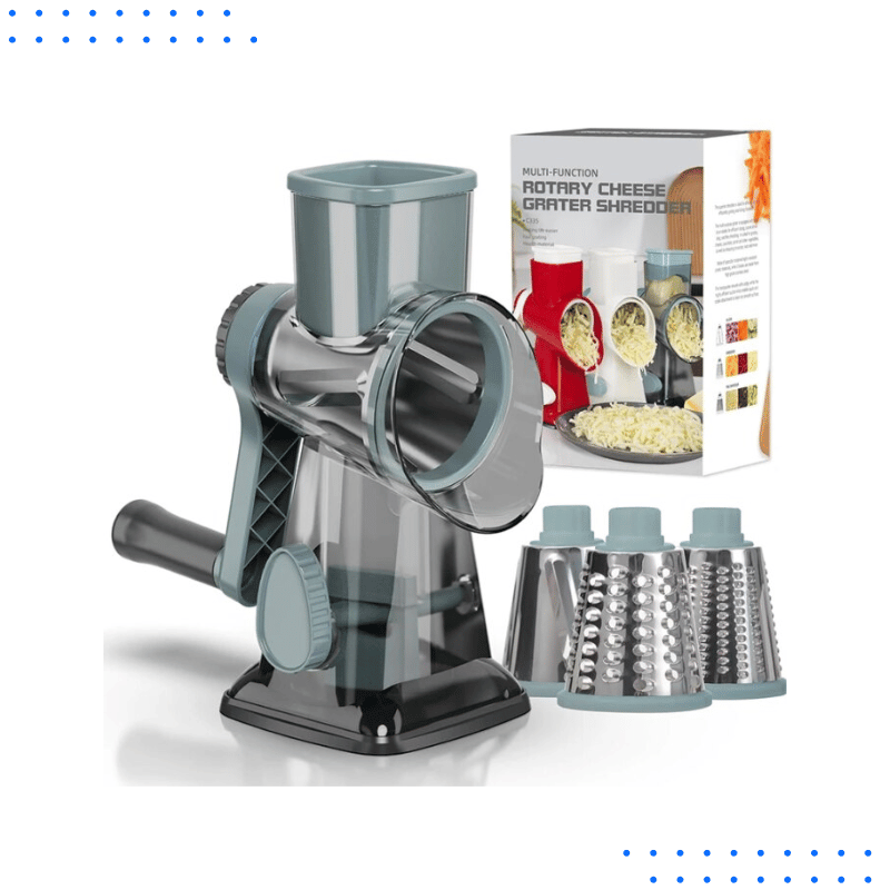 The 3-in-1 Rotary Cheese & Vegetable Grater is a must-have for anyone who loves cooking fresh, healthy meals. Its interchangeable blades and stable suction base make grating, slicing, and shredding quick, safe, and enjoyable.
